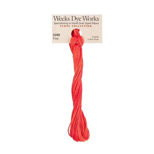Fire #2268 by Weeks Dye Works- 5 yds Hand-Dyed, 6 Strand 100% Cotton Cross Stitch Embroidery Floss