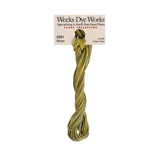Moss #2201 by Weeks Dye Works- 5 yds Hand-Dyed, 6 Strand 100% Cotton Cross Stitch Embroidery Floss