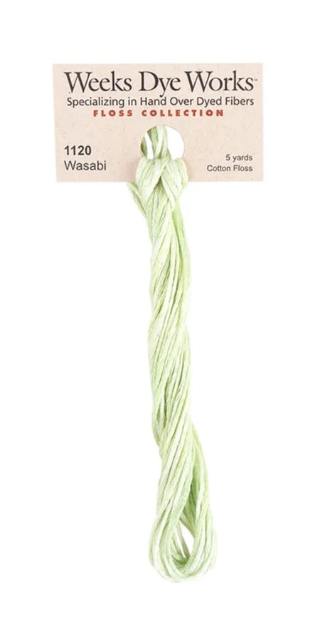 Wasabi #1120 by Weeks Dye Works- 5 yds Hand-Dyed, 6 Strand 100% Cotton Cross Stitch Embroidery Floss