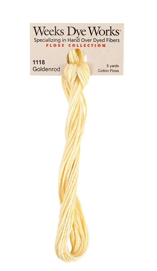 Goldenrod #1118 by Weeks Dye Works- 5 yds Hand-Dyed, 6 Strand 100% Cotton Cross Stitch Embroidery Floss