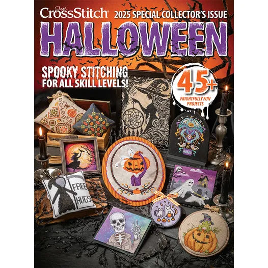 Halloween 2025 Issue is loaded with over 45 creepy, creative projects. From ornaments to bookmarks and wall art to decorative pillows, there is a frightfully fun project for every level of cross-stitcher.