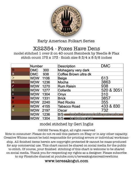 Cross stitch pattern from Teresa Kogut featuring adorable foxes in a circle with the phrase "Foxes have dens and birds of the air have nests but the Son of Man has no place to lay his head. Matthew 8:20"