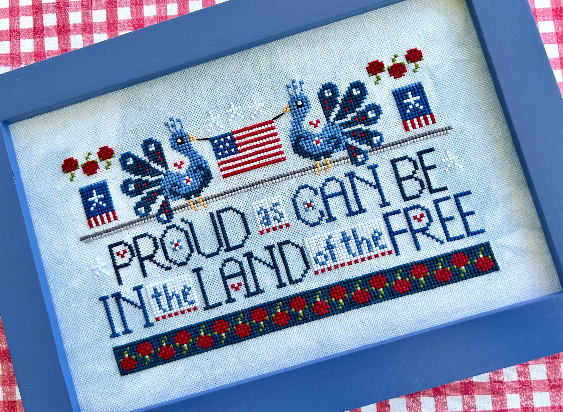 The finished size of each design will be 7.3" wide x 4.5" high. This will fit nicely in a 6" x 9" frame.