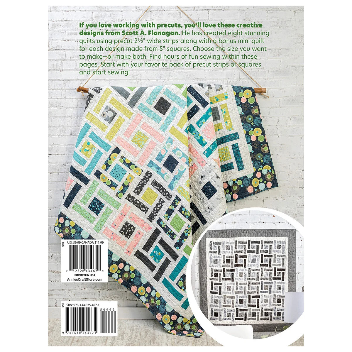 If you love working with precuts, you’ll love these creative designs from Scott A. Flanagan. He has created eight stunning quilts using precut 2.5” strips along with a bonus mini quilt for each quilt made from 5” charm pack squares. Choose the size you want to make—or make both. Find hours of fun sewing within these pages. Start with your favorite pack of precut strips or squares and start sewing!