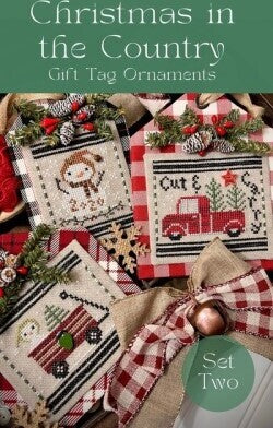 Cross stitch pattern from Annie Beez Folk Art featuring three gift tags that can be used as Christmas ornaments!