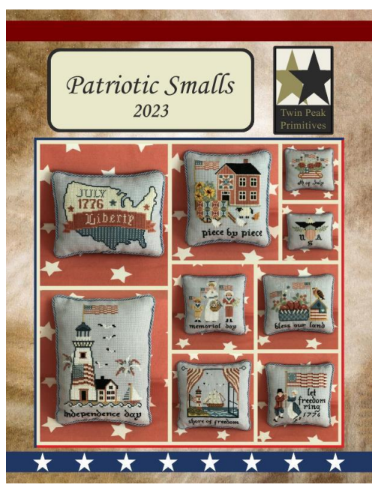 Cross stitch design from Twin Peak Primitives featuring 9 Chart suggests 16ct Sky Blue Aida, or 32ct Ice Blue Linen, and DMC threads. 19 pages Soft cover