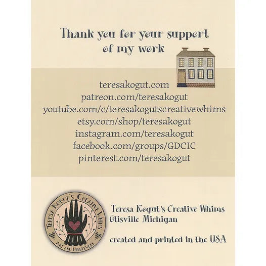 Dwelling Place is stitched on 40 ct Dunes at Dusk by LFA Linens using Classic Colorworks, Weeks Dye Works and DMC floss. Stitch count it 284 x 318. Finished size: 14" x 15 1/2"