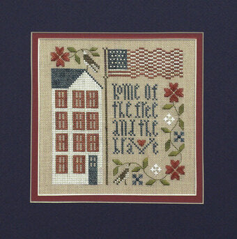 "Home of the free and the brave". Model stitched over two on 32 Ct. Summer Khaki Belfast Linen with Gentle Arts Sampler Threads, and DMC floss. Stitch Count:
