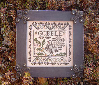 Model stitched on 40ct. Vintage Light Examplar Linen using Needlepoint Silk Threads DMC alternative: 975, 3021 (2), 3051, 3828, 3858. Stitch count is 125W X 127H.