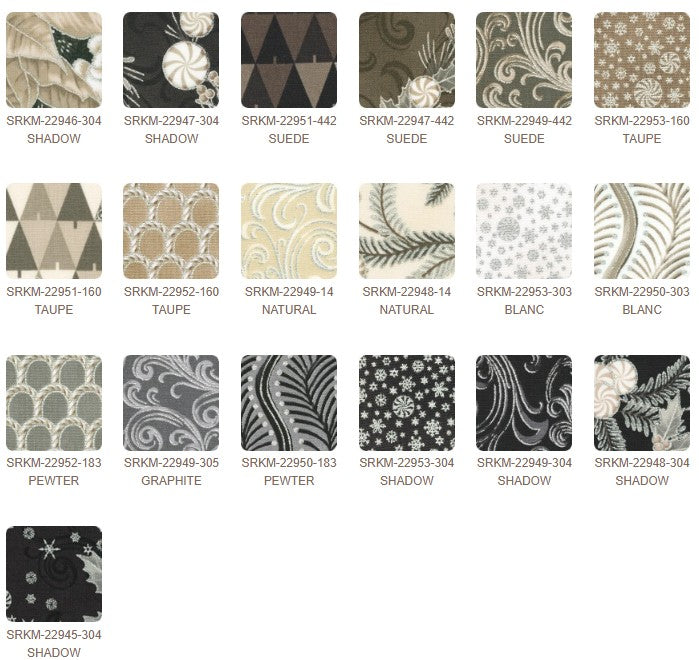 This fabric bundle features the charming 'Holiday Flourish - Peppermint Twist' design, perfect for adding a festive touch to your projects. The bundle includes 40 pieces of 2.5-inch strips, showcasing a delightful mix of holiday-themed patterns in shades of brown, beige, and white, with intricate snowflakes and swirls. Ideal for quilting, crafting, or any sewing project that requires a touch of holiday magic, this 100% cotton fabric ensures durability and a soft feel, making it a versatile addition to your fabric collection.