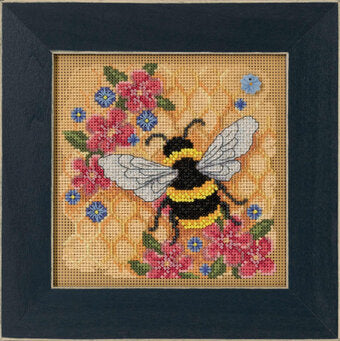 A floral design with a Honey Bee. Kit Includes: Beads, ceramic button, perforated paper, floss, needles, chart and instructions. Finished Size: 5.25" x 5.25".