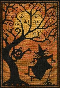 Model stitched 2 over 2 on 30 Ct. Onyx linen using DMC floss. Stitch Count: 90 x 130. Design Size: 5.25" x 7.5".