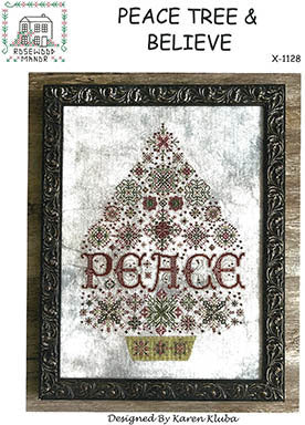Cross stitch pattern from Rosewood Manor Designs featuring a Christmas tree with the word peace!