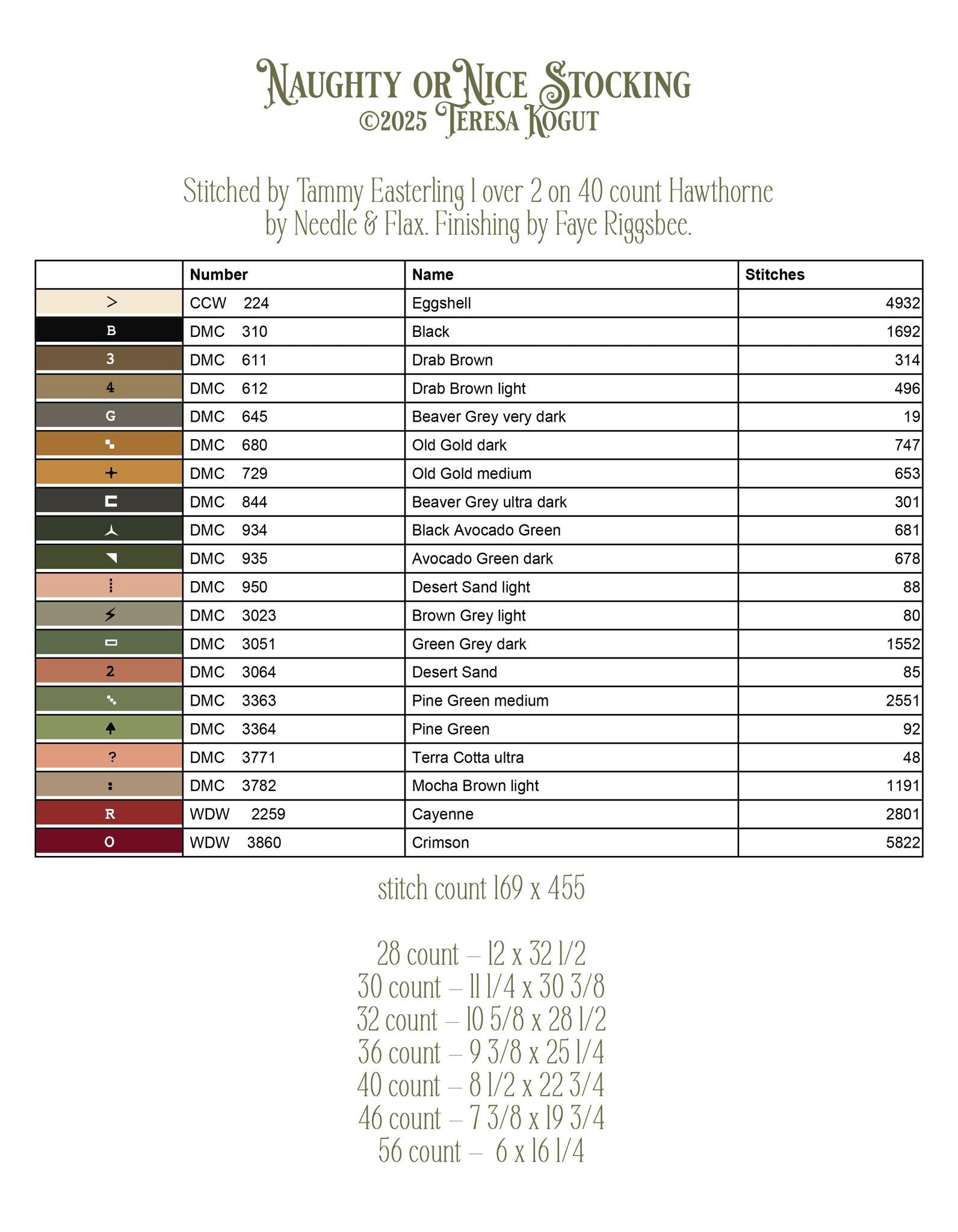 14-16ct Aida or 30ct Linen - 11.25“ x 30.375“
