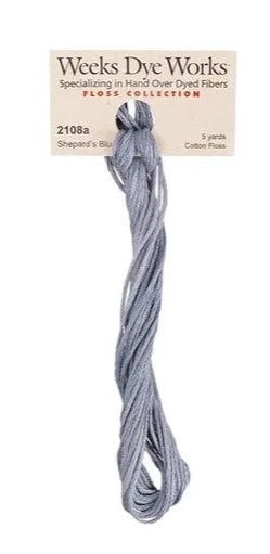 Shepard's Blue #2108a by Weeks Dye Works- 5 yds Hand-Dyed, 6 Strand 100% Cotton Cross Stitch Embroidery Floss
