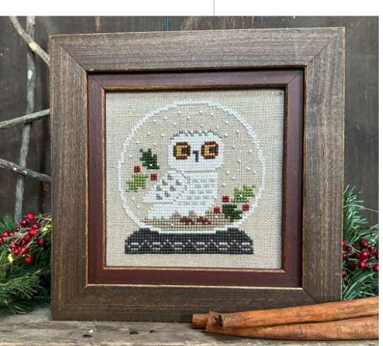 Snowy Owl Globe Kit includes the Chart, 20ct Linen, Snowbeads and #5 Pearl Cotton Floss