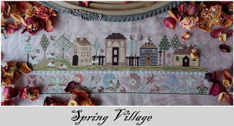 Cross stitch pattern from Niky's Creations featuring a row of colorful house and a row of beautiful flowers.
