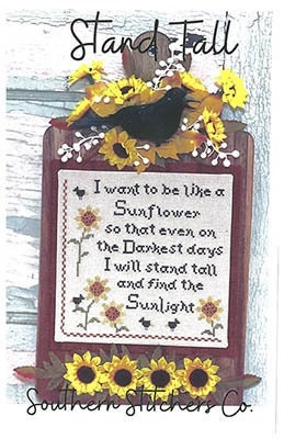 Pattern is stitched on 28 ct Tea Dyed by Charles Craft using Southern Fried floss (Black Smoke, Janet's Sunflower, Spiced Cider) and Classic Colorworks floss (Bean Sprout).