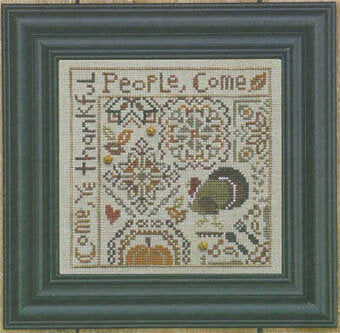 Model stitched on 30 Ct. Parchment Linen using Gentle Art Sampler Threads, Weeks Dye Works & Classic Colorworks. (DMC alternates are 3045 3863 221 301 3865 433 3790 300 3371)