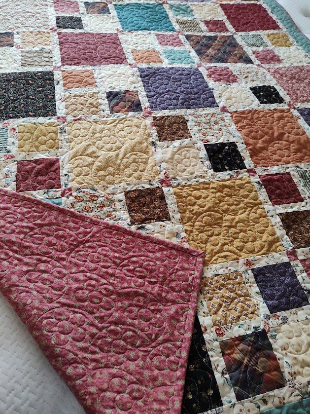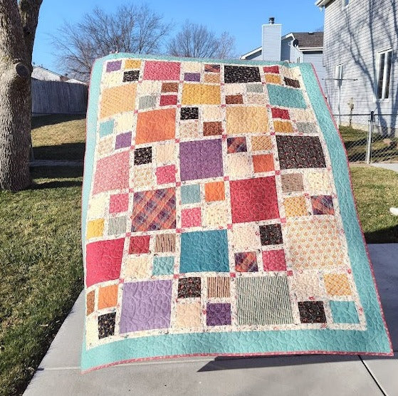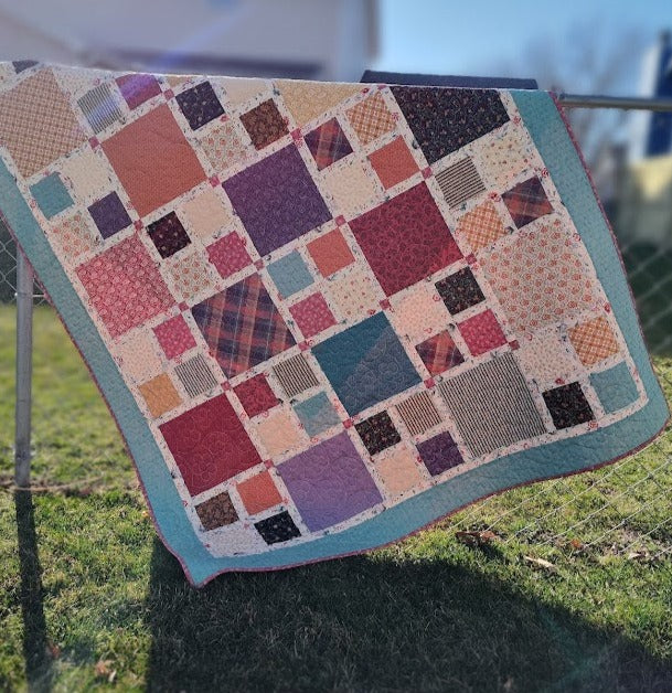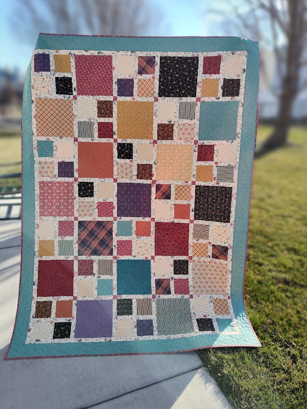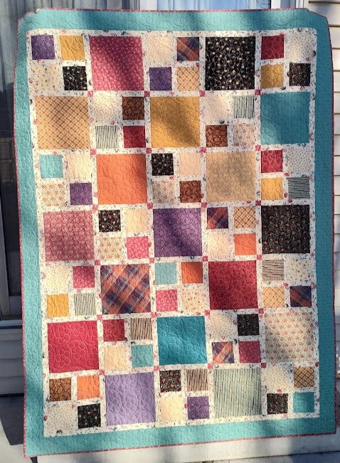 Note:  The quilt we show in the pictures is one (1) row more narrow than the actual pattern.  You will have enough fabric to do the quilt as designed in the pattern.