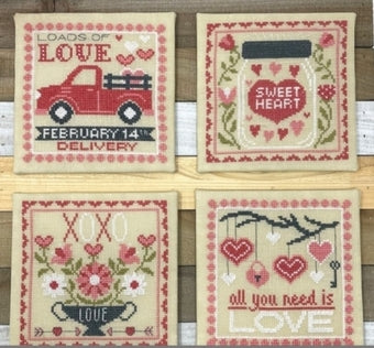 Cross stitch pattern from Tiny Modernist featuring four valentines designs!
