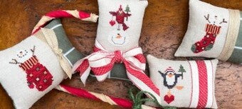 Cross stitch pattern from Amy Bruecken Designs featuring four small Christmas designs with snowmen, birds, and penguins!