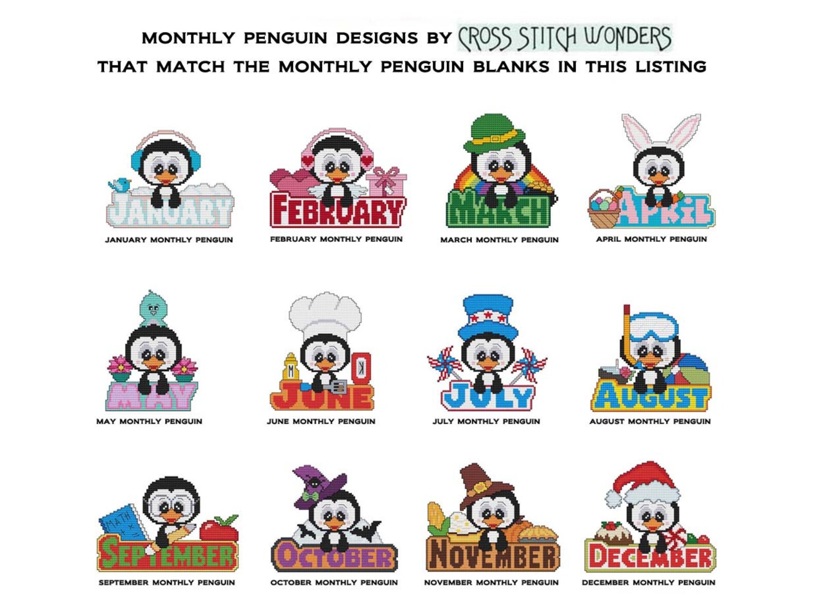 Dive into a delightful year filled with charming penguin designs to stitch on wood blanks. Each month brings a new, playful penguin project that will brighten your crafting time!