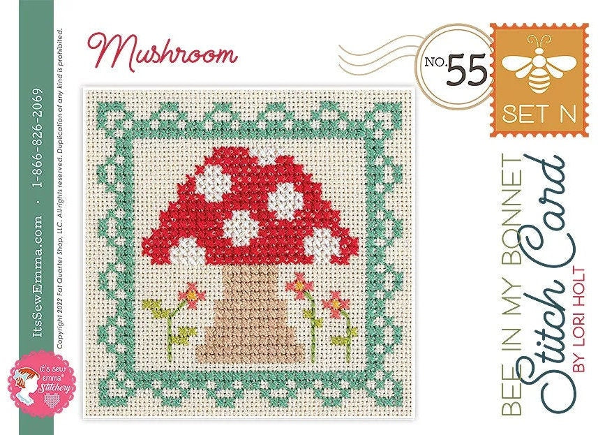 The Bee in My Bonnet Stitch Cards come with full-color instructions, diagrams and supply list, including suggested DMC colors. Each set includes four stitch cards printed on durable cardstock and comes in a plastic bag.